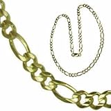- Handsome 14Kt Yellow Gold Figaro chain necklace in a classic 3 + 1 design.