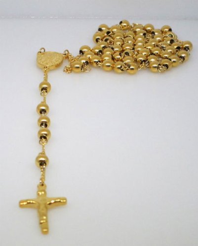 Click here to visit the 14k YELLOW GOLD FINISH MENS ROSARY CHAIN NECKLACE CROSS 32" full review